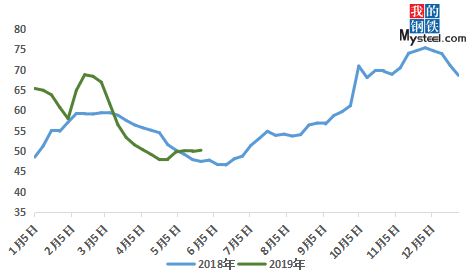 鋼廠庫存:據(jù)本周Mysteel調(diào)研數(shù)據(jù)顯示,鋼廠庫存量為49.89萬噸,較上周減少0.18萬噸,通過產(chǎn)線數(shù)據(jù)顯示,